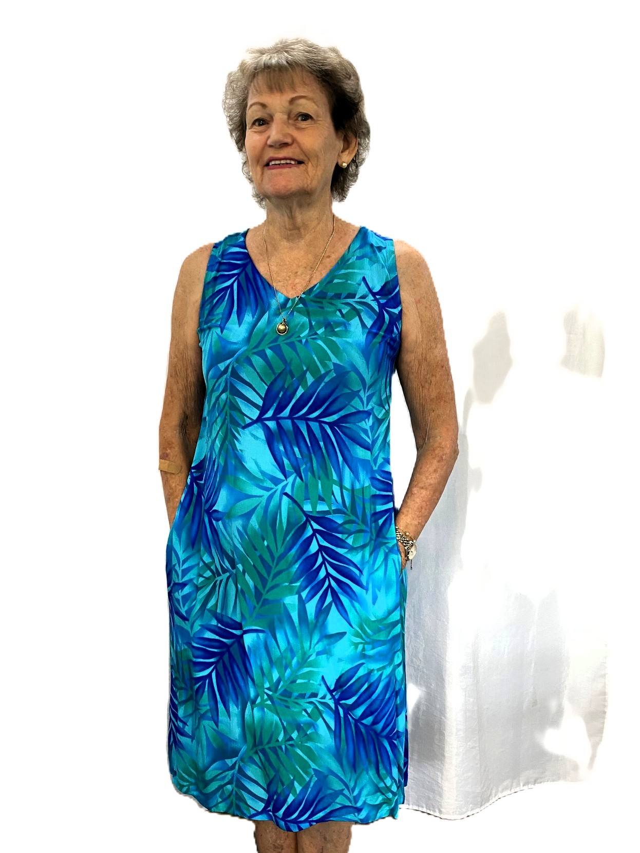 SUMMER KNEE LENGTH DRESS NO SLEEVES IN CRINKLE COTTON WITH POCKETS NO IRONING COOL TO WEAR