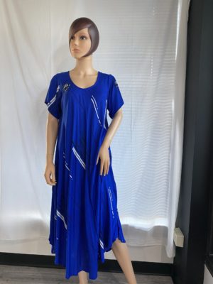 Semi-fitted layered dress in stretch nylon blue floral sleeveless
