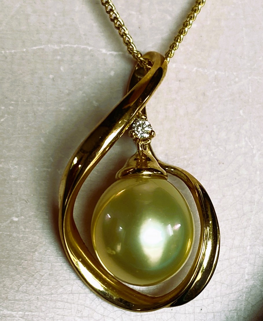 Pearl Pendant Gc Yellow South Sea In 9ct Gold With Diamond Large quantity